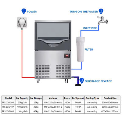Capacidade de produção de gelo | 60 kg/24 horas | 100 kg/24h | 150 kg/24h | ||