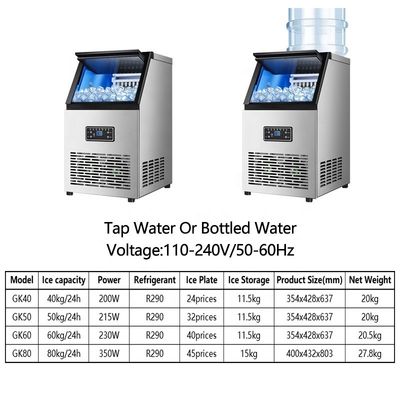 Capacidade de produção de gelo | 40 kg/24h | 50 kg/24h | 60 kg/24h | 80 kg/24h | |||