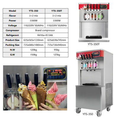 R410a R134A Refrigerante Soft Serve Máquina de sorvete 5 sabores Fabricante comercial Inglês Língua de operação 22
